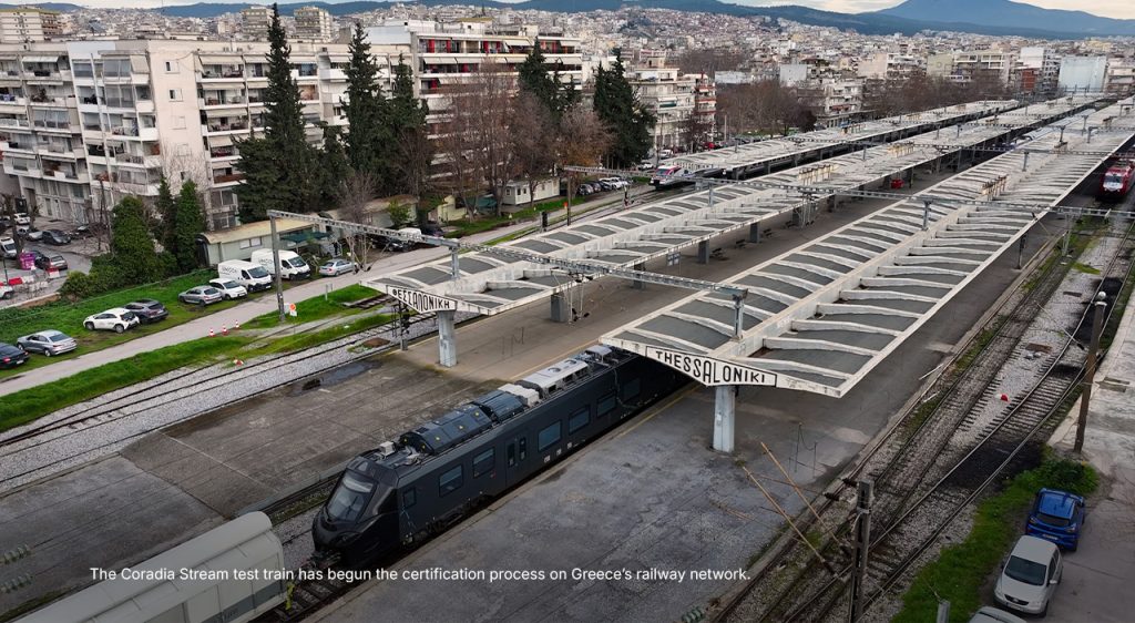 The Coradia Stream test train has arrived in the country and is currently based at Hellenic Train’s depot in Thessaloniki, where it will remain when not operating test runs as part of the rolling-stock approval process.